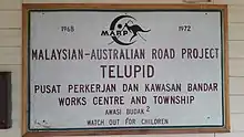 Malaysian-Australian Road Project (MARP) signboard at the entrance to Public Works Department (Telupid district) office