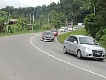 Heavy traffic along the route near Tamparuli. The route is frequently used by various commuters, in addition to tourists, although the route is a mountainous road. This includes heavy vehicles such as trucks and lorries.