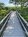 The extent of the refuge is mostly open water, but includes upland shoreline and islands with salt marsh, dunes, brackish ponds, woodland and fields. It is the only "wildlife refuge" in the National Park System. Originally created and managed by New York City as a wildlife refuge, the term was retained by Gateway when the site was transferred in 1972. Usually, federal wildlife refuges are managed by the U.S. Fish and Wildlife Service. Features created under city ownership include two large freshwater ponds. A visitor center with a parking lot provides free permits to walk the trails.[4] The two main trails go around the East Pond and the West Pond.[5] The West Pond and its trail, however, were breached by Hurricane Sandy in 2012.[6][7]