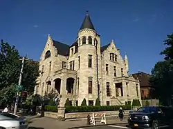 The James A. and Ruth M. Bailey House[3] is a large freestanding limestone mansion located at 10 St Nicholas Place at West 150th Street in the Sugar Hill area of Harlem, Manhattan, New York City. The house was built from 1886 to 1888 and was designed by architect Samuel Burrage Reed in the Romanesque Revival style for circus impresario James Anthony Bailey of the Barnum & Bailey Circus.[4] When it was constructed there were few other buildings in the area, and as a result, sitting as it does on an escarpment, the Bailey Mansion had a clear view to the east of the Long Island Sound.[3]