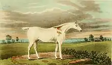 He acquired numerous wealthy and aristocratic patrons, and his pictures were also engraved for sporting publications such as W. H. Scott's British Field Sports,[3] The Sporting Repository,[4] The Annals of Sporting and The Sporting Magazine. For the last of these, Scott engraved Barenger's painting of the racehorse Blucher (ca. 1814).[5]