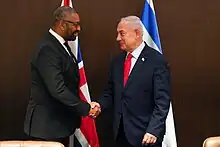 - ↑ "'I'm here to show solidarity to Israeli people,' says Foreign Secretary James Cleverly during visit to Israel". Sky News. 11 October 2023.