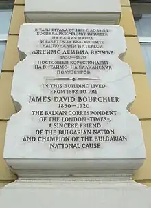 James David Bourchier (18 December 1850 at Baggotstown, near Bruff in County Limerick – 30 December 1920 in Sofia, Bulgaria) was an Irish journalist and political activist.[1][2] He lived in Sofia from 1892 to 1915. Bourchier was an honourable member of the Sofia Journalists' Society. He acted as an intermediary between the Balkan states in the beginning and at the conclusion of the Balkan Wars of 1912–1913.[3]