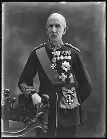 He was appointed Companion of the Order of the Bath (CB) in the 1898 New Year Honours list, and Commander of the Royal Victorian Order (CVO) in 1901.[2] Knighted in December 1902,[3][4] he was later appointed Knight Commander of the Royal Victorian Order (KCVO), and in the 1920 civilian war honours was appointed Knight Grand Cross of the Order of the British Empire (GBE).[5]