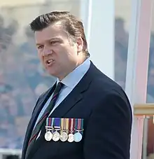 Heappey wearing his military medals in 2022