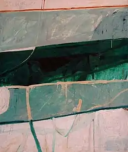 His paintings and collages can be found at the Smithsonian in Washington, DC and the MoMA in New York.[12][13] Albright Knox Gallery purchased Hudson River School Series # 30 in 1957.[14] Carnegie Museum of Art acquired Hudson River School Series # 16, 1957 the same year. The Hirshhorn Museum and Sculpture Garden at the Smithsonian Museum of American Art in Washington DC houses several unique works by James Jarvaise.[15] The Museum of Modern Art in New York City owns Hudson River School Painting #32.[16] Los Angeles County Museum of Art (LACMA) currently has two James Jarvaise paintings in their permanent collection.[17] The AD&A Gallery, University of California, Santa Barbara acquired Hudson River School Series #59 from the Ruth Schaffner Collection in 1986.