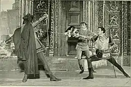 After a year on tour, Hackett opened in a theatrical adaptation of Rupert of Hentzau at the Lyceum Theatre in New York City on April 10, 1899, playing King Rudolf and his lookalike Rudolf Rassendyll.[3][4]