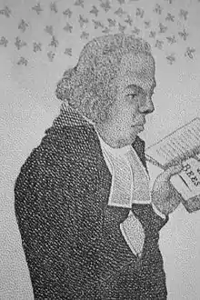 James Lapslie (1750-1824) was Scottish minister and local historian serving Campsie. He played a role in the trial of Thomas Muir of Huntershill in 1793. Kay drew him and dubbed him the "Pension Hunter" at the trial.[1]