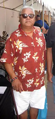 James Luna (February 9, 1950 – March 4, 2018[1]) was a Puyukitchum, Ipai, and Mexican-American performance artist, photographer and multimedia installation artist.[2] His work is best known for challenging the ways in which conventional museum exhibitions depict Native Americans.[3] With recurring themes of multiculturalism, alcoholism, and colonialism, his work was often comedic and theatrical in nature.[4] In 2017 he was awarded a Guggenheim Fellowship.[5]