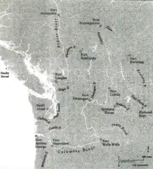 In 1826, he is recorded as a correspondent of fur trader John Stuart, uncle of Lord Strathcona & Mount Royal of Knebworth House.[11] Yale then served at Fort Alexandria and Fort St. James. When he was unwell in 1827, he was sent to Fort Vancouver where medical care was provided to him.[3] Later in that year, Yale accompanied Gov. George Simpson on his exploratory trip down the Fraser River. At the end of the journey, Yale remained in Fort Langley, where he worked as a clerk under Chief James McMillan. McMillan was one of those who took part in the acquisition by the HBC of Fort Astoria and Fort Okanogan; forts that belonged to their competitor John Jacob Astor and his Pacific Fur Company.[12] Astor initial plan was to create a fur monopoly in the Columbia district by allying himself with the North West Company, who were qualified as "Lords of the fur trade" in Montreal, but they had refused the offer, as they were able to challenge the monopoly of the HBC by themselves.[13]