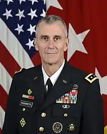 James F. Pasquarette (born 1961) is a retired lieutenant general[2] in the United States Army, who last served as the deputy Chief of Staff of the Army G-8, previously serving as Commanding General of United States Army Japan.[3] He is a graduate of Furman University and was commissioned in 1983.[4]