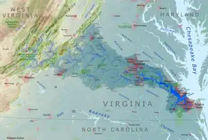 ![]() A map of the James River drainage basin | |