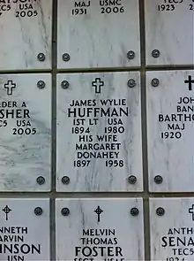 - ↑ "Burial Record, James Wylie Huffman". Arlington Cemetery.mil. Arlington, VA: Office of Army Cemeteries. Retrieved February 9, 2022.