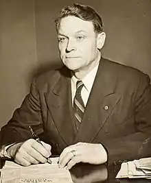 In 1945, Senator Harold Hitz Burton resigned in order to accept appointment to the United States Supreme Court.[1] Lausche appointed Huffman to fill the vacancy and he served in the U.S. Senate from October 8, 1945 to November 5, 1946, when Kingsley A. Taft defeated him in the election to complete the remainder of the term.[1][2] After leaving the Senate, Huffman resumed practicing law until 1957, when he became president of the Motorists Mutual Insurance Company.[2] He later became president of a newly-formed subsidiary, Motorists Life Insurance Company.[2]