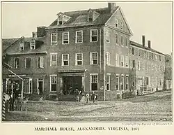 (3) "Wayfinding: Marshall House". City of Alexandria, Virginia. 2018-03-28. Archived from the original on 2019-01-26. Retrieved 2019-01-26. - ↑ "Life of James W. Jackson, The Alexandria Hero, The Slayer of Ellsworth, Martyr in the Cause of Southern Independence; Containing a Full Account of the Circumstances of His Heroic Death, and the Many Remarkable Incidents In His Remarkable Live, Constituting a True History, More Like Romance Than Reality. Published for the Benefit of His Family". Richmond, Virginia: West & Johnson. 1862. Retrieved 2019-01-27 – via Internet Archive.