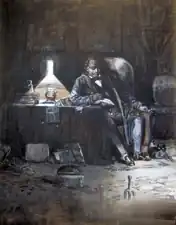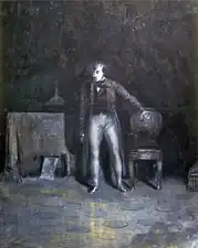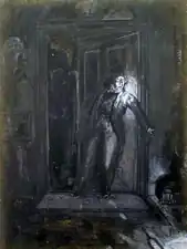 After leaving the industrial school in 1871, he travelled to America to join his elder brother Henry and to attempt to become as successful an artist as Henry. While in America, James supported himself as a sidewalk artist and Vaudeville caricaturist. In Chicago, aged 23 years, he entered a competition in Harper's Magazine to illustrate a special edition of the Edgar Allan Poe poem The Raven. He was unsuccessful but his drawings are now exhibited in the Edgar Allan Poe Museum in Richmond, Virginia.[3]