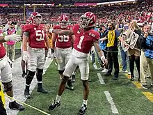Williams was named a starter for the Crimson Tide going into his first season with the team.[11] He made an instant impact with four receptions for 126 receiving yards and one touchdown in a 44–13 victory over Miami in the Chick-fil-A Kickoff Game.[12] He was named the Southeastern Conference (SEC) Special Teams Player of the Week for Week 4 after returning three kickoffs for 177 yards and two touchdowns and also caught an 81-yard touchdown pass in a 63–14 win over Southern Miss.[13] He had ten receptions for 146 receiving yards and two touchdowns in the 41–38 loss to Texas A&M on October 9.[14] On November 6, he had ten receptions for 160 receiving yards and one touchdown in a 20–14 victory over LSU.[15] One week later, he had six receptions for 158 yards and three touchdowns in a 59–3 victory over New Mexico State.[16] In the following game, against Arkansas, he had eight receptions for 190 receiving yards and three touchdowns in the 42–35 victory.[17] In the SEC Championship, a 41–24 victory over Georgia, he had seven receptions for 184 receiving yards and two touchdowns.[18] Williams was named first-team All-SEC and All-American as well as the conference's co-Special Teams Player of the Year.[19][20] Williams suffered a torn ACL in the 2022 College Football Playoff National Championship rematch with Georgia.[21] He finished the 2021 season with 79 receptions for 1,572 yards and 15 touchdowns.[22] He led the SEC in receiving yards, yards per reception, and receiving touchdowns.[23] He declared for the 2022 NFL Draft following the championship game and began to rehab from the injury.[24] Jameson would finish up his Alabama career with a 2021 Sec Championship, and a 2021 Cotton Bowl win.