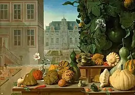 The 1659 inventory of Archduke Leopold Wilhelm's collection shows that it included 12 works by van der Baren.[3] The works of van der Baren in the collection comprised, besides still lifes, some architectural and park landscapes. To date no examples of works other than still lifes have been attributed to van der Baren. Some of his known still lifes include an architectural background (such as the Still Life with Pumpkins in the Kunsthistorisches Museum) or a landscape view (such as A Seascape within a Garland of Fruit in the Powis Castle and Garden, Powys, Wales, National Trust).[2]