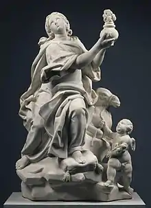 Jan Claudius de Cock[1] (Brussels, baptized on 2 June 1667 – Antwerp, 1735)[2] was a Flemish painter, sculptor, print artist and writer.[3] De Cock produced both religious and secular sculpture on a small as well as monumental scale. De Cock completed many commissions in the Dutch Republic. He worked on decorations for the courtyard of the Breda Palace for William III, King of England, Ireland, and Scotland and stadtholder.[2] He is credited with introducing neoclassicism in Flemish sculpture.[4] He was a prolific draughtsman and designed prints for the Antwerp publishers. As a writer, he wrote a poem about the 1718 fire in the Jesuit Church in Antwerp and a book of instructions on the art of sculpture.[5]