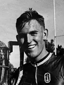 ![]() Jan Hettema with a cycling trophy, circa 1950s | |