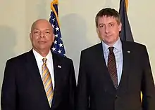 Jambon meets with U.S. Secretary of Homeland Security Jeh Johnson in Washington, D.C., on 1 April 2016.