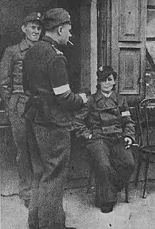 Shortly before the outbreak of the Warsaw Uprising, Mazurkiewicz was made commander of the Radosław Group. This force was one of the largest, best trained and equipped Polish units in the uprising.[1][4] After the initiation of the uprising, the unit seized major portions of the Wola suburbs, and subsequently defended it against German attacks carried out by troops under the command of SS Gruppenführer Heinz Reinefarth and Standartenführer Oskar Dirlewanger. One of the battalions of the group, Battalion Zośka, liberated the Gęsiówka concentration camp located within Warsaw and freed 384 prisoners (mainly Jews), most of whom then joined the unit.[5] The Radosław Group fought its way to Warsaw Old Town borough when further defense in Wola became impossible. In the areas of Wola that Reinefarth's and Dirlewanger's troops recaptured from the insurgents, at least 40,000 civilians and prisoners of war were murdered in the Wola massacre.[note 1][6][7] On 11 August he was seriously wounded during the fighting
