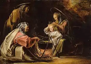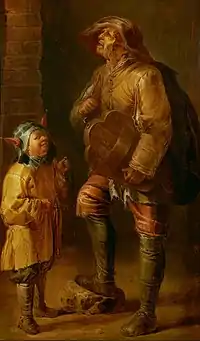Various historians have attempted to explain the origins of his style. They have identified a range of influences on the work of van de Venne: his themes and style are reminiscent of his contemporary Adriaen Brouwer.[3] His preference for brownish tonalities and themes are similar to those of Dutch such as Adriaen van Ostade, Benjamin Cuyp and Andries Both. His nervous style shows possibly the influence of David Teniers the Elder and some authors even conjecture he may have studied under Teniers.[4] Lucas van Leyden's engravings as well Adam Elsheimer's treatment of the effects of light and shade are also cited as possible influences. Some of his works have formerly been attributed to the style of Rembrandt.[2]