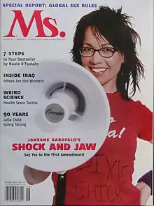 She became more prominent as a liberal when she voiced opposition to what became the 2003 Iraq War, appearing on CNN and Fox News to discuss it. She said that she was approached by groups such as MoveOn.org and Win Without War to go on TV, because these organizations say that the networks were not allowing antiwar voices to be heard. Garofalo and the other celebrities who appeared at the time said they thought their fame could lend attention to that side of the debate. Her appearances on cable news prior to the war garnered her praise from the left and spots on the cover of Ms. and Venus Zine. Garofalo has had frequent on-air political disputes with Bill O'Reilly, Brian Kilmeade, and Jonah Goldberg.[22]
