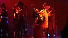Jackson embarked on her second world tour in support of her debut album with the Virgin Records label. Costumes and wardrobe for the tour were designed by stylist Tanya Gill, with outfits "rang[ing] from pipebone vests with high-heeled moccasin boots to zoot suits top-hats to circus-ringmaster bustiers."[41] With a show encompassing over 100 costumes, a team of over 50 costume makers was led by wardrobe supervisor, Helen Hiatt.[41] The tour's debut concert was held on November 24, 1993, in Cincinnati, Ohio.[42] Jackson held a four show engagement at Madison Square Garden which began on December 17, 1993, with the final performance held on New Year's Eve.[43] Michael Snyder of the San Francisco Chronicle described Jackson's stage performance at the San Jose Arena in February 1994, as what erased the line between "stadium-size pop music concerts and full-scale theatrical extravaganzas".[44]