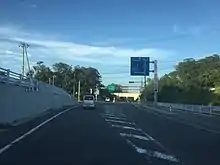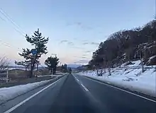 The Tsugaru Expressway is an incomplete two-lane national expressway in Aomori Prefecture that is signed as an auxiliary route of National Route 101. Its first section was established in 2002 and the expressway has been extended in stages since then.[16] The expressway travels west from Aomori through the cities of Goshogawara and Tsugaru, where the main section of the expressway currently ends at an interchange with the main routing of National Route 101. A short expressway stub opened in Ajigasawa in 2016.[17] The expressway is planned to be extended south through Fukaura to Happō in Akita Prefecture.[18]