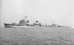 Akebono (曙, "Daybreak")[1] was the eighteenth of twenty-four Fubuki-class destroyers, built for the Imperial Japanese Navy following World War I. When introduced into service, these ships were the most powerful destroyers in the world.[2] They served as first-line destroyers through the 1930s, and remained formidable weapons systems well into the Pacific War.