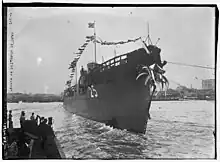 Construction of the Mutsuki-class destroyers was authorized as part of the Imperial Japanese Navy's build up from fiscal 1923 of ships not covered by the Washington Naval Treaty. The class was a follow-on to the earlier Minekaze and Kamikaze-class destroyers, with which they shared many common design characteristics.[1] Uzuki, built at the Ishikawajima Shipyards in Tokyo, was laid down on 11 January 1924, launched on 15 October 1925 and commissioned on 14 September 1926.[2] Originally commissioned simply as Destroyer No. 25, the ship was assigned the name Uzuki on 1 August 1928.