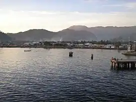 Yapen (also Japan, Jobi)[1] is an island of Papua, Indonesia. The Yapen Strait separates Yapen and the Biak Islands to the north. It is in Cenderawasih Bay off the north-western coast of the island of New Guinea. To the west is Mios Num Island across the Mios Num Strait, and to the east Kurudu Island. Off the southeast coast of Yapen are the Amboi Islands and to the southwest are the Kuran Islands.[2] Together these islands form the Yapen Islands Regency within the province of Papua. It is populated with communities of Yobi, Randowaya, Serui, and Ansus. Its highest point is 1,496 metres (4,908 feet).