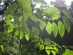 The Jungle Garden is divided into three parts: the Arboretum that combines collections of rare trees (Bretschneidera, Cathaya, Sequoia or Fitzroya), a bamboo garden, a walled garden containing collections (Hydrangea, Rhododendron, vines, and introductions) and a Eucalyptus plantation of ecotypes selected for their resistance to cold climates.[2]