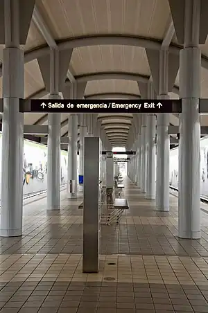 Jardines is a rapid transit station in the San Juan agglomeration, Puerto Rico. It is located between Deportivo and Torrimar stations on the sole line of the Tren Urbano system, in Bayamón. The station is located in Juan Sánchez barrio, close to the municipal border with Guaynabo, and it is named after the Jardines de Caparra neighborhood, located nearby. The trial service ran in 2004, however, the regular service only started on 6 June 2005.[1]