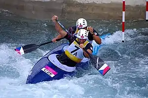 Jaroslav Volf (Czech pronunciation: [ˈjaroslav ˈvolf]; born 29 September 1979, in Brandýs nad Labem)[1] is a Czech slalom canoeist who competed at the international level from 1994 to 2013. Competing in four Summer Olympics, he won two medals in the C2 event with a silver in 2008 and a bronze in 2004.