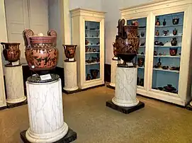 The Jatta National Archaeological Museum in Ruvo di Puglia, a historic and artistic city in southern Italy, is housed in rooms of Palazzo Jatta and represents the only example in Italy of a nineteenth-century private collection that has remained unaltered from its original museographic concept.[2][3] The finds preserved in the museum were collected by the archaeologist Giovanni Jatta in the early nineteenth century and his collection was subsequently enriched by his nephew of the same name and was sold to the Italian state in the twentieth century.[3]
