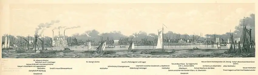 The family owned on the Elbe next to the old Hamburg timber harbour and situated on the city's dyke the Baroque house Stadtdeich number 10[5][46] and the nearby houses Stadtdeich 3[51] and Stadtdeich an der Elbseite (on the Elbside) 159. Stadtdeich 10 (sometimes referred to as Stadtdeich 9) was a listed Hamburg cultural heritage site which was destroyed in the Operation Gomorrah end of July 1943 – the heaviest assault in the history of aerial warfare and later called the Hiroshima of Germany by British officials.[52]
