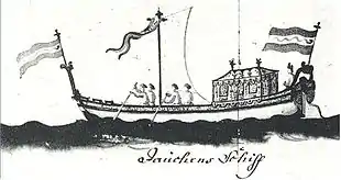 In the 17th century Sulza has been twice devastated, 1613 by the Thuringian Flood[99] [100] and 1640 when it was plundered by Swedish troops.[101] Johann Christian Jauch the Elder (1638–1718) left the fallen back Sulza and relocated to Güstrow where he entered 1662 the service of the Grand Ducal House of Mecklenburg at its residence Güstrow Castle.[8][5][102] He was a member of the ducal household of Magdalena Sibylle, née Duchess of Schleswig-Holstein-Gottorf, wife of Gustav Adolph, Duke of Mecklenburg-Güstrow, until he became 1669 First Valet de chambre (German: Erster Lacquay und Taffeldecker) of Crown Prince Carl of Mecklenburg-Güstrow.[5] 1665 he married Ingborg Nicolai (†1696),[8][9][5] who had come to Güstrow with the duchess Magdalena Sibylle from Gottorf Castle,[8] serving her as lady's maid and confidant.[5][103] The social rank of a servant at these times mirrored the lordship − the higher the lordship, the better the opportunities for the servant to reach a prestigious position himself.[104] A ducal valet de chambre ranked in Mecklenburg-Güstrow equal to The Very Reverend,[105] thus allowing the lordship to demonstrate its own rank. Suitably the first daughters of Johann Christian and Ingborg Jauch married members of the nobility.