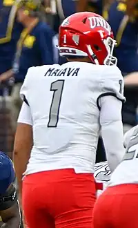 After redshirting in 2022, Maiava began the 2023 season as a backup.[4] After an injury to Doug Brumfield against Vanderbilt, Maiava led UNLV to a comeback victory, throwing for 261 yards and combining for two touchdowns.[5][6] The following week against UTEP, he made his first career start leading UNLV to a 45–28 victory.[7] After finishing the regular season passing for 2,626 yards and 14 touchdowns, Maiava was named the Mountain West Freshman of the Year and to the all-conference second team.[8] Following the conclusion of the regular season, he announced that he would be returning to UNLV the following season, despite speculation that he would transfer.[9][10] However, Maiava went back on this decision on January 1, 2024, announcing that he would be entering the transfer portal.[11][12]