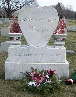 - ↑ Komar, Susan (April 4, 2008). "Fans Honor Hollywood Star Jayne Mansfield in Small-town Cemetery". Pocono Record. Archived from the original on February 21, 2016.