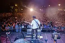 Special event in 2017: The Festival has dedicated one day to the people of Pata Rât, a segregated area situated near the city landfill where approximately 300 families are living at the moment.[20] The four communities in the area were formed after repeated evacuations of poor families, most of them being of Roma ethnicity, that had been taken away from the central parts of the city and moved on the outskirts. The population increased also after many villagers living near Pata Rât came to the landfill in search of means of survival.[21] Therefore, by having concerts in this area, the Festival managed to draw attention to the people living in Pata in extremely poor conditions and to combat discrimination against this community.[22][23] The event also took place in 2018.[24]