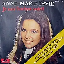 "Je suis l'enfant soleil" (French pronunciation: [ʒə sɥi lɑ̃fɑ̃ sɔlɛj]; translated: "I am the sun-child" or "I'm a child of the sun") was the French entry in the Eurovision Song Contest 1979, performed in French by Anne-Marie David. David had won Eurovision six years earlier, representing Luxembourg at the 1973 contest with "Tu te reconnaîtras".