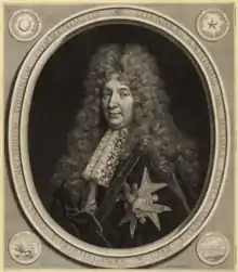 Portrait as member of the order of the Holy Spirit, painted by Nicolas de Largillière, engraved by Cornelis Vermeulen 1691
