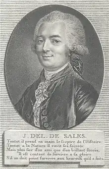 Jean-Baptiste-Claude Delisle de Sales or Jean-Baptiste Isoard de Lisle (29 April 1741 – 22 September 1816) was a French philosopher noted for his multi-edition, multi-volume opus The Philosophy of Nature: Treatise on Human Moral Nature.[1]