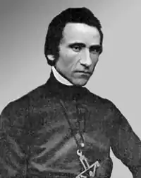 Jean-Nicolas Laverlochère (December 6, 1812 in St. Georges d'Espérance, Grenoble, France – October 4, 1884 in Témiscaming, Quebec) was a French missionary in Canada. He began his religious life as a lay brother in the Congregation of the Oblates, but feeling called to evangelize the natives of Canada, he was allowed to study for the priesthood, and was ordained on May 5, 1844 at L'Acadie, near Montreal. He was a missionary in the Saguenay district from 1844 to 1847, at Abitibi, Moose Factory, and other posts on Hudson Bay from 1847 to 1863, at Plattsburgh, New York from 1863 to 1868, and on Lake Timiskaming from 1868 to his death in 1884. He laboured for the conversion of the native tribes. His reputation as a zealous missionary spread throughout Catholic Europe to such an extent that he was ultimately recognized as the Apostle of Hudson Bay. A stroke of palsy interrupted his labours in the course of 1851. He died in 1884 and is buried in the Catholic cemetery of Fort Témiscamingue.[1]