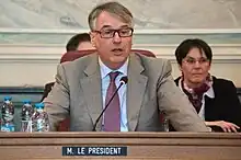 These functions also led him to become at the same time administrator of the Agence de l'eau Artois-Picardie (1995-2001), then chairman of the program commission of this public institution (1998-2001).[9] Finally, he became vice-president of the Metropolitan Natural Space (French: Espace naturel métropolitain) from 1995 to 2001.