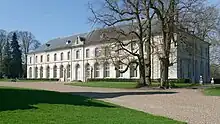 Jean Aubert frequented the unofficial Académie du Petit-Luxembourg, in the Hôtel du Petit Luxembourg, that was founded in 1729 by the comte-abbé de Clermont, another member of the house of Condé, the younger brother of the builder of the stables of Chantilly. For the abbé, who was commendatory abbot of Chaalis, Aubert created the plans for the reconstruction of Chaalis Abbey in 1736. Begun in 1739 and intended as a large quadrangle, only the entrance wing with the abbot's residence was completed. Further work was halted in 1745 due to lack of funds and never resumed.[7]