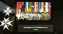 Colonel J. A. Berthiaume was invested into the Order of the British Empire in 1962 for his impressive organizational skills, initiative, linguistic ability, unmatched negotiating skills and his bravery during the ONUC mission in Congo.[34][35] He was the first Canadian officer to be given that recognition since the Second World War.[36]