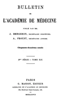 11. 1 2 3 4 Bulletin de l'academie de medicine, v.19–20. W. Wood. 1888. pp. 885–888. Retrieved 2009-03-01.
